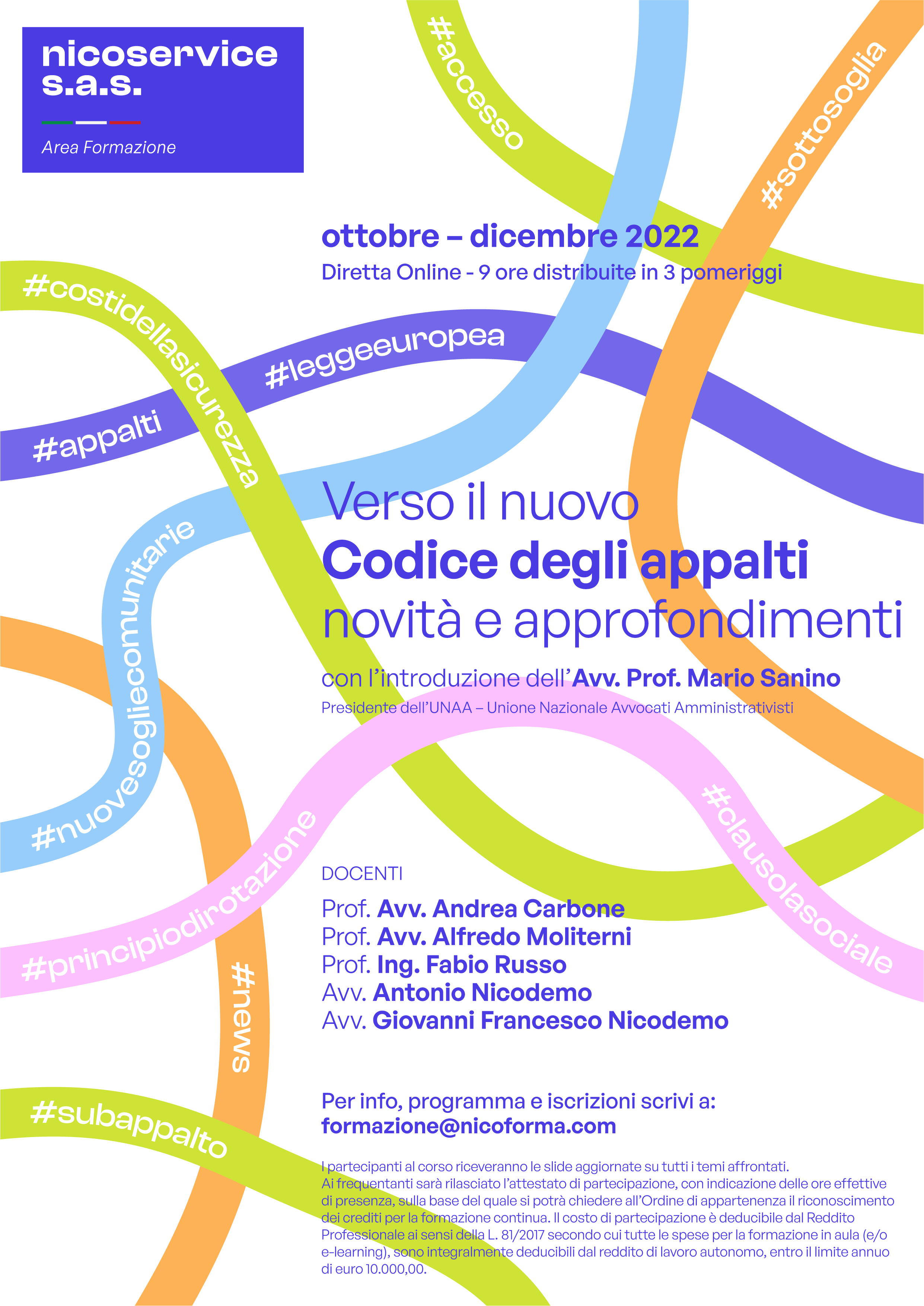 Docenti: Prof. Avv. A. CARBONE – Prof. Avv. A. MOLITERNI – Prof. Ing. F. RUSSO – Prof. Avv. M. SANINO – Avv. A. NICODEMO – Avv. G.F. NICODEMO